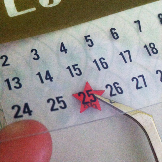 Next, take the calendar transparency from the 25Th & Pine die cuts pack and adhere it over the top of the vellum. I have placed a star sequin under the number 25 using a glue dot and a tweezer.