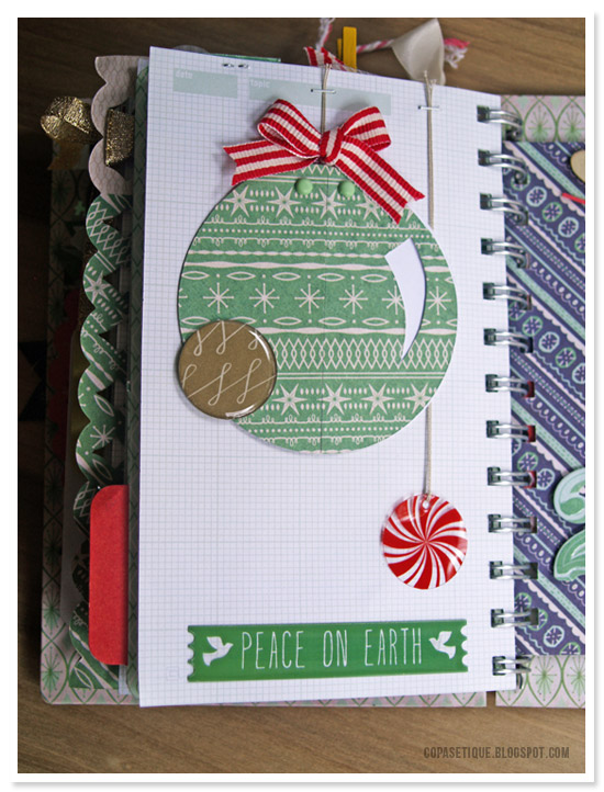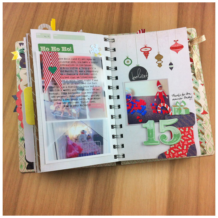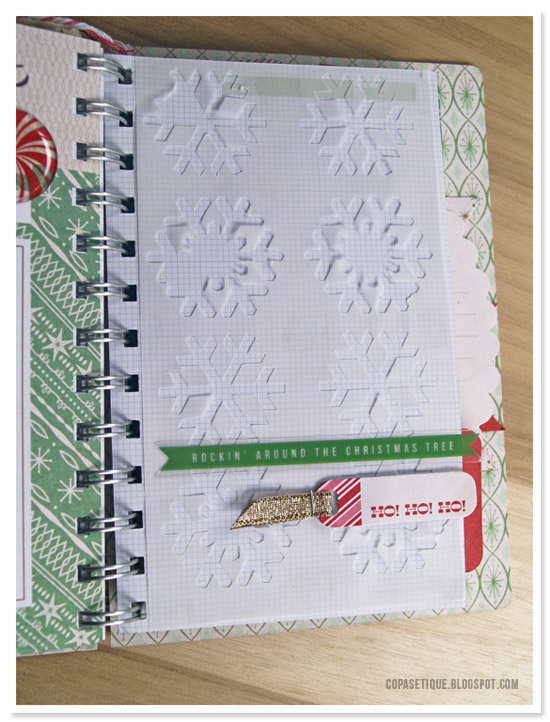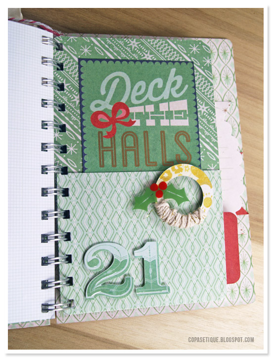 This page has another pocket page. I've cut the 'deck the halls' from the 'Santa Highway' paper and adhered it to the paper, just slightly below where the pocket starts, to give it the illusion it is coming out of the pocket.