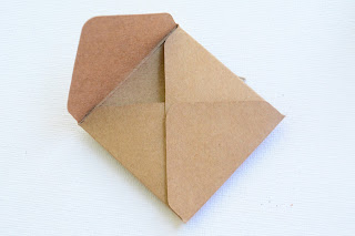 To make the mini envelopes I first created a large square envelope with an envelope punch board and then scanned it with my Scan n Cut machine. I resized the image to fit 9 envelopes on a 30 x 30cm sheet and cut them from kraft cardstock. I then scored the fold lines and used some double-sided tape to secure the flaps.