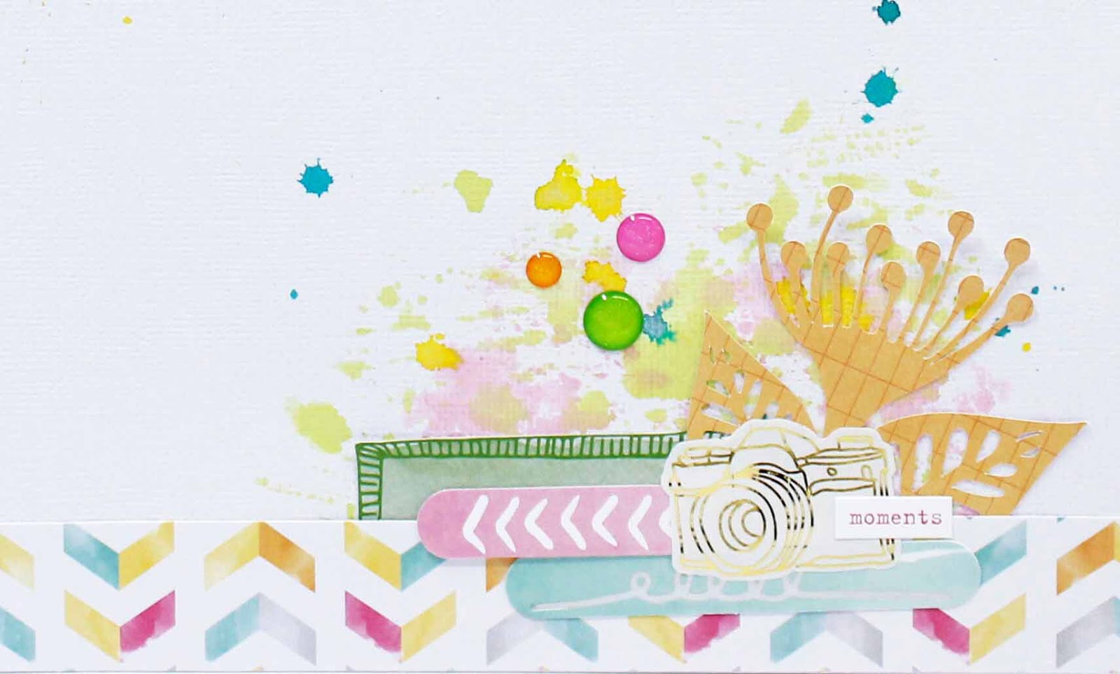 I used a bit of plastic added a few droplets of the mist and a spray of water and applied it to my cardstock and added a few enamel dots
