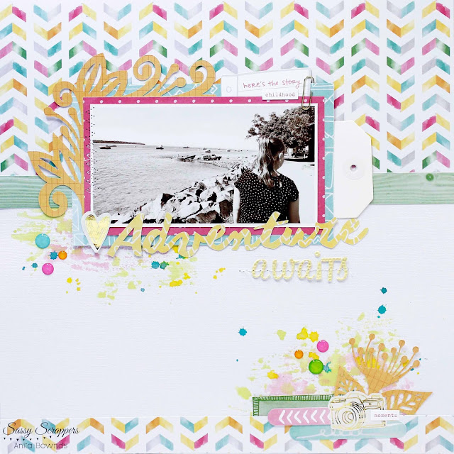 I gathered all my papers and embellishments and started by layering behind my photo.