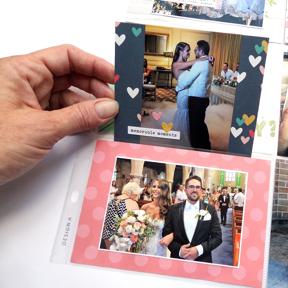 I often hang on to various sorts of memorabilia and have used an invitation to create a flip up card to hold a few extra photos from my beautiful god-daighter's wedding.