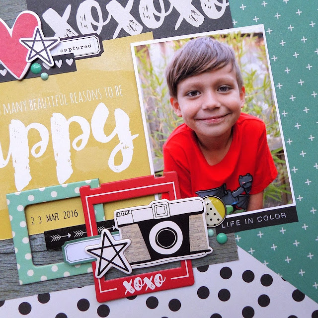 Hi again :) As you know I have been using the fabulous Simple Stories 'Life in Color' collection in my project life album, and because this range has so many fun pieces I couldn't help also using it to create a 12x12 layout for my little guy who recently turned six.