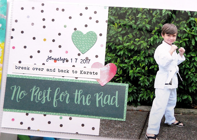 Reaching for more planner supplies with my roller date stamp - I also added printed journal strips and simple die-cut hearts to one of the fun sayings from one of the patterned papers. I always look for papers with cut-apart sayings as they are an easy and inexpensive way to add detail to your pages.