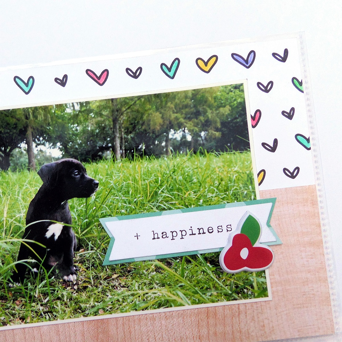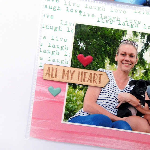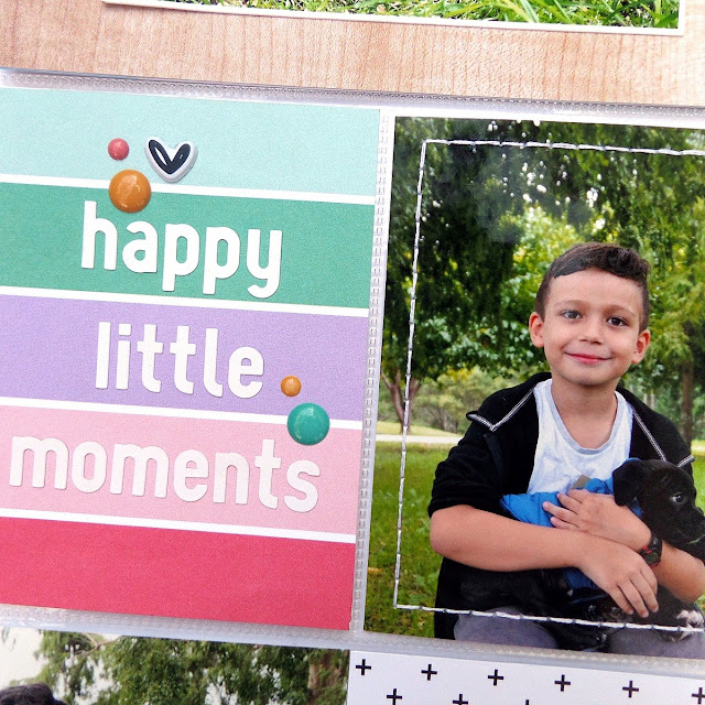 Once again allowing the products to do the work... I finished things off with more fun patterns, some puffy stickers and a cute wood veneer piece.