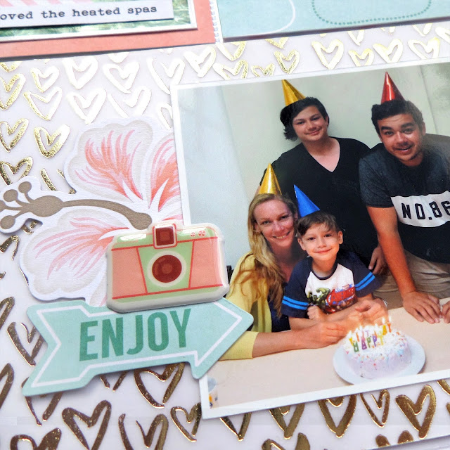 I mirrored the photo placement in the large pockets on the reverse side of the page and often do this to make my pages feel balanced.