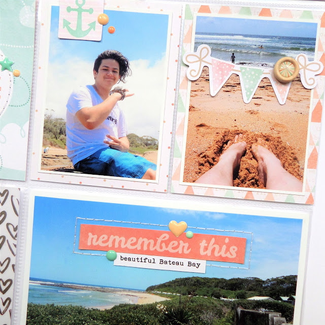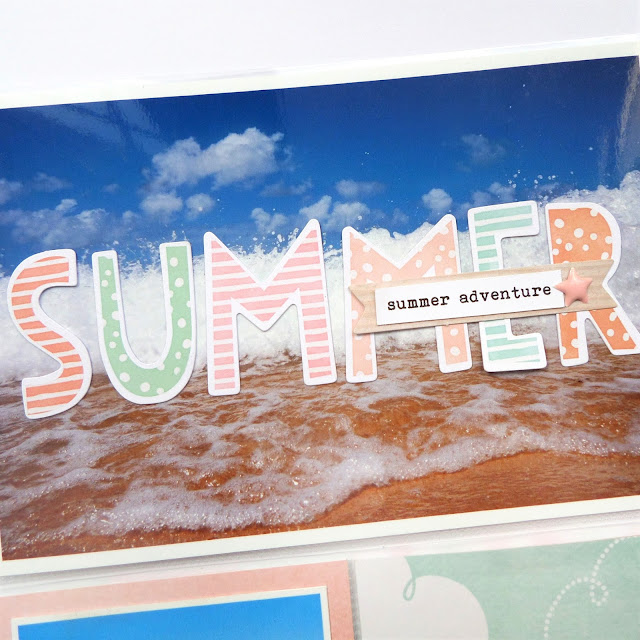 Varying the textures of the embellishments used in my clusters also helps to give each pocket more interest and the puffy stickers worked well with both the cards and photos.
