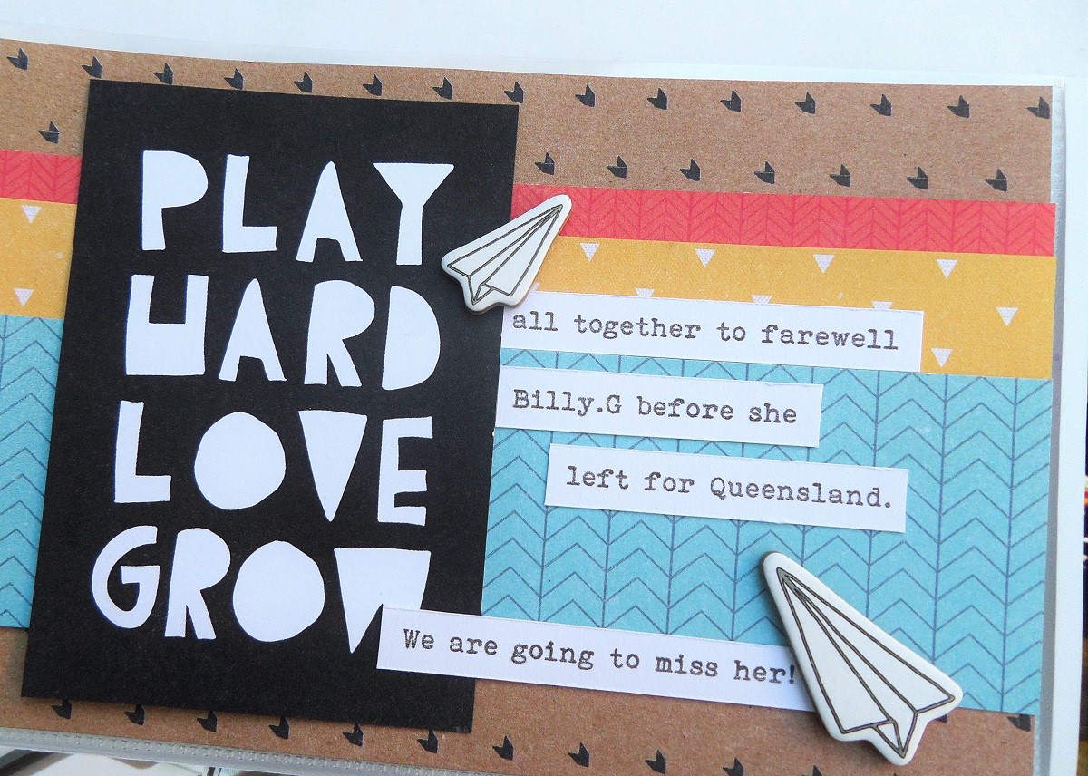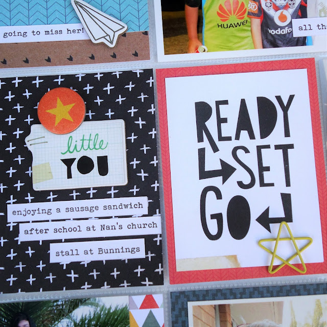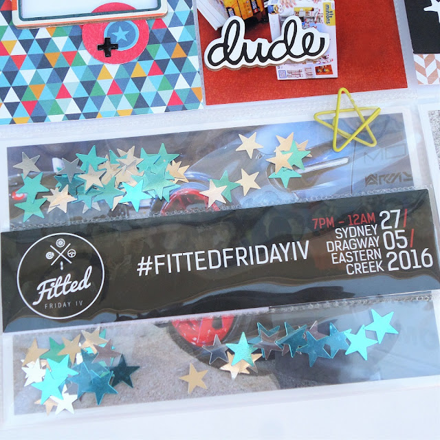 In an effort to make better use of my tools, I have challenged myself to use my fuse tool this month and it was the perfect solution for including some event tickets from a night at the drag-way my boys attended. I filled the pocket with stars and used the fuse to seal in the tickets and stars before attaching the pocket to the page protector. I used one of the star paperclips as an easy way to open the shaker pocket to reveal the photograph beneath and love that it adds a bit of interaction into my album.