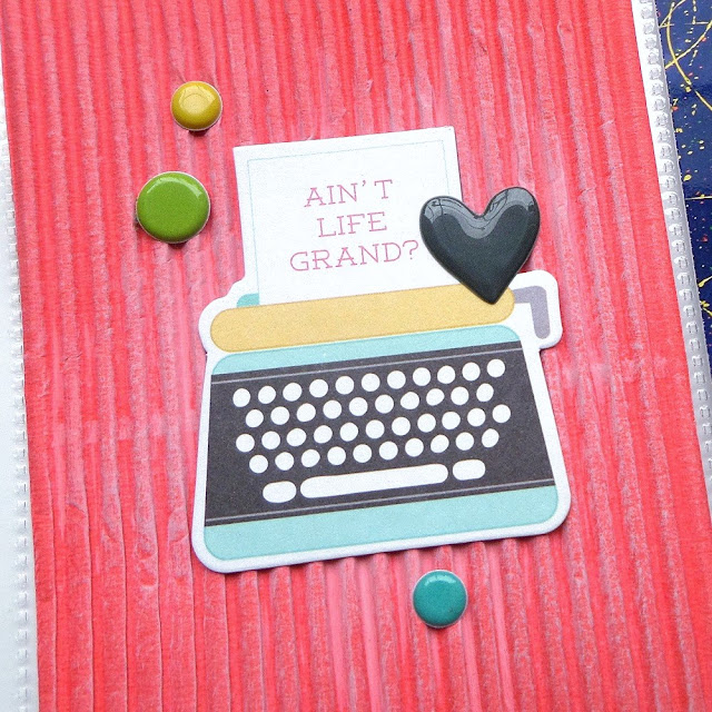 I carried over the corrugated cardstock and blue patterned paper to the second week, and kept the overall layout similar.
