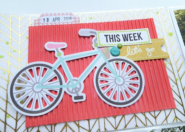 As always I began with a custom title card to set the tone for the week, and have teamed up the gorgeous gold foiled vellum with some fun corrugated cardstock to give me a variety of textures.