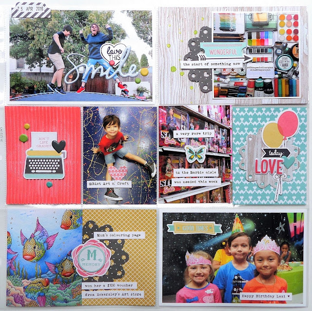 I have maganed to fit in the last two weeks of April on these pages and when using the same range of products across multiple pages, I often repeat the same patterns, colours and elements across all the pages so that there is a nice transition from one page to the next - check out my previous post to see exactly what I mean ;)