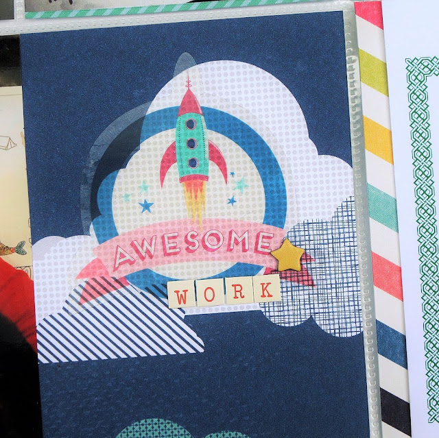 I love adding embellishments to my pockets and really liked the variety of chipboard, stickers and die-cuts that are available int his collection.