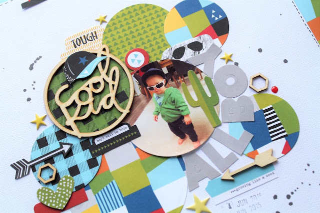 I took the Cool Kid wood veneer and backed it with some patterned paper so it didn't get lost on the white cardstock.