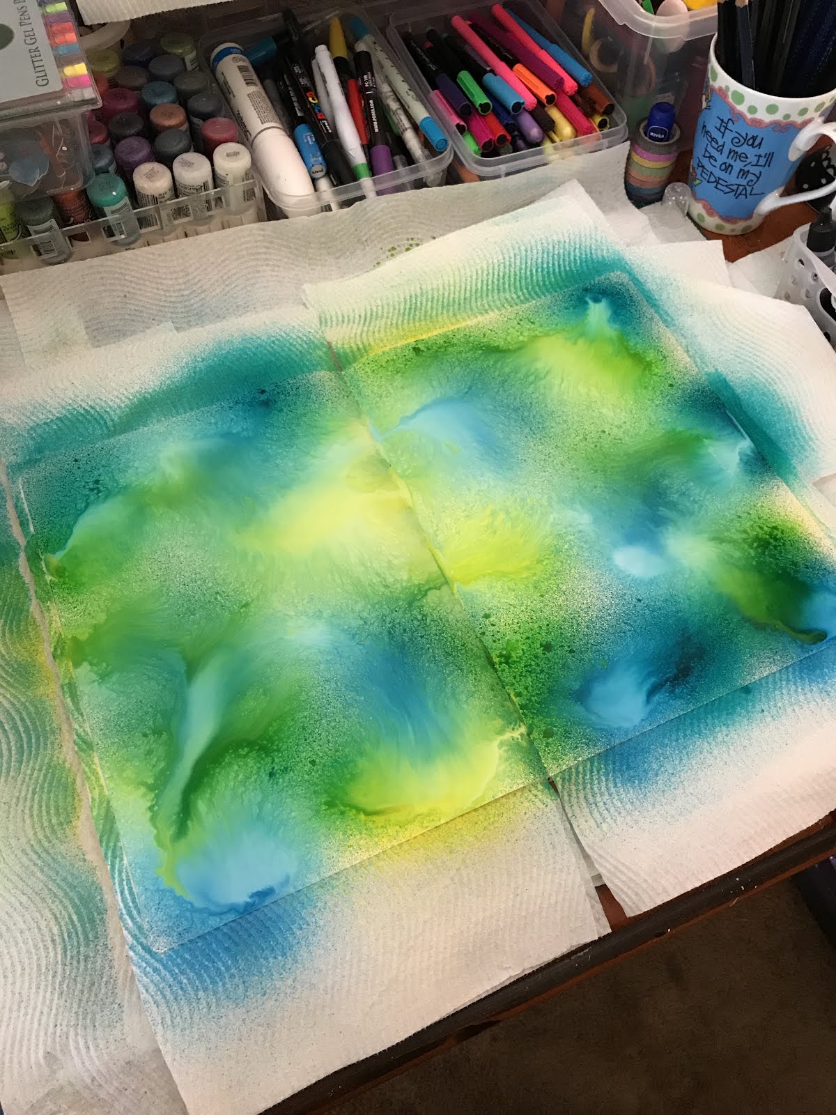 I then tilted my journal around to let the colours run and mix a little and then let them dry.