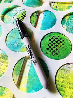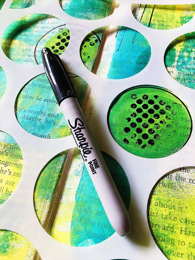 Step 5 Select a texture type stamp and Archival ink and stamp inside your circles.