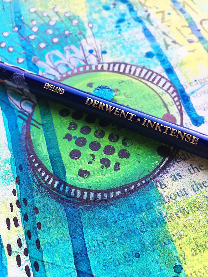 Step 10 Finally using Derwent Inktense, Neocolor II watersoluble pastels, crayons or Scribble sticks