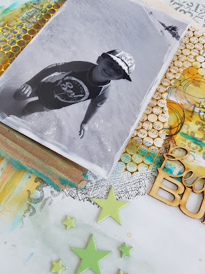 I felt the layout was still missing something.... and then it hit me - I decided to try the Essentials Chipboard Stars Green which I think just finished off the layout perfectly and was so happy that the colour matched my layout...yay!!!!