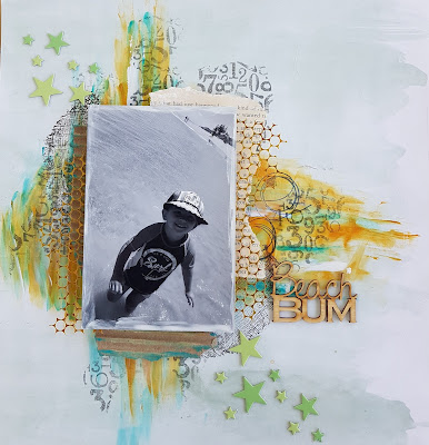 Today I am sharing with you all a mixed media layout I created whilst on a scrapbooking cruise earlier this week. I had so much fun creating this and hopefully this inspires you to create some beachy layouts before winter sets in!!