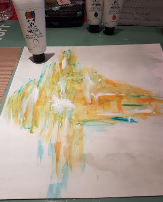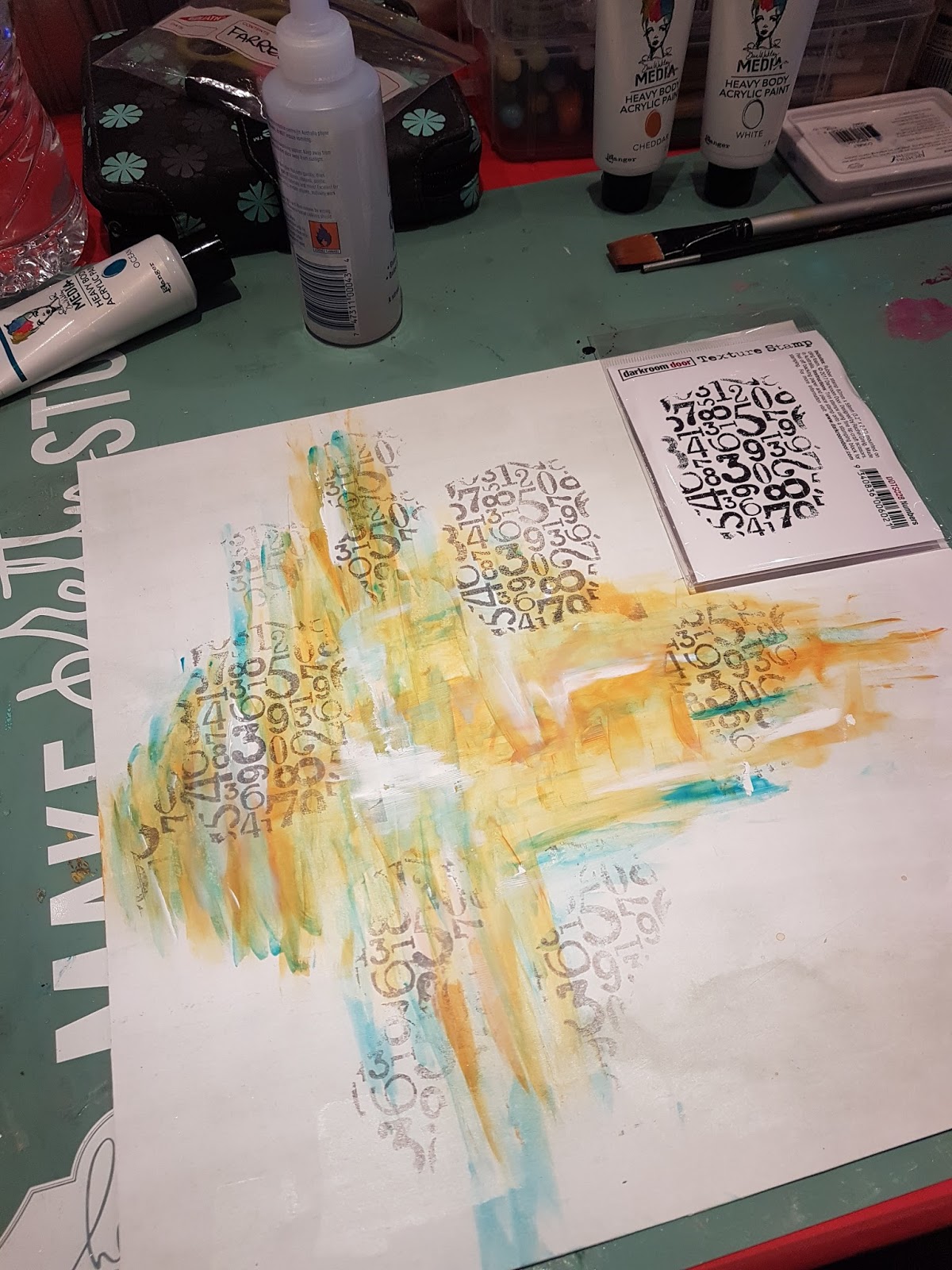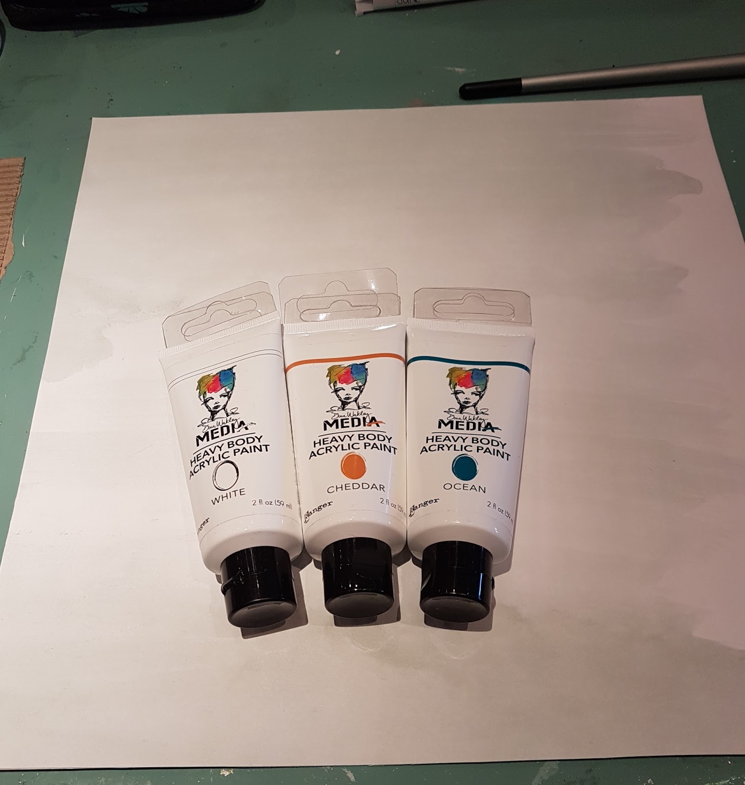 I started with Cheddar and waited till it was dry before I applied Ocean and the same with White as seen below.