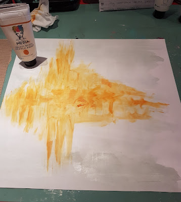 Using my fingers, I started to apply the paint to my paper. Why use my fingers you ask? I like the texture my fingers make rather than using a paint brush but if you wanted to use a brush, make sure it is a dry brush as this will also give you texture.