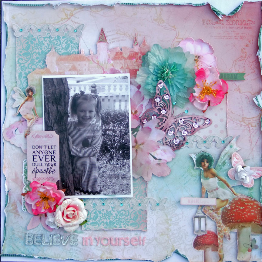 - Tags: altered chipboard, fairy page, Imaginarium Designs, Kaisercraft Enchanted Garden, prima flowers, Shell Carman