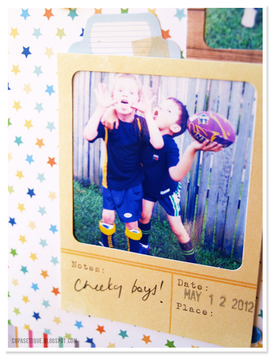 Quite loving these leftover Crate alphas from last month's kit. They look great layered on top of eachother a bit and if you pop your adhesive on the printed part, it's hardly visible.