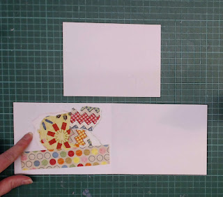 now cut a second bit of cardstock to cover all those bits of patterned paper