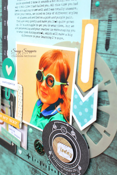 I created a couple of pages before the school holidays and have finally had chance to shoot them. My little Madam features in both... snippets of life captured, like a visit to the optometrist which saw her being fitted for her first pair of specs.