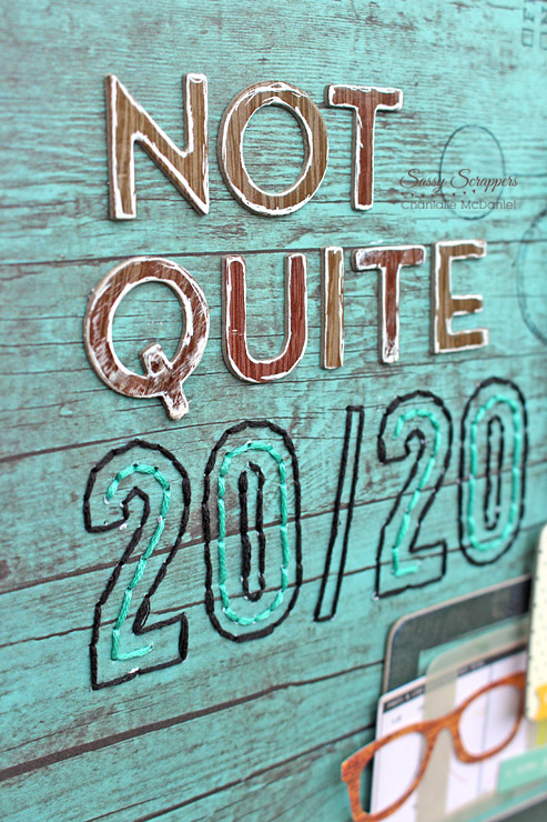 I gratefully re-homed some seriously cute stamps recently and they definately played a big part in these pages. I couldn't wait to play with them! This stitching was done with an Amy Tangerine stitching template and I've messed around with a white pen on the chipboard alphas to tie in with the 'not quite perfect' theme.