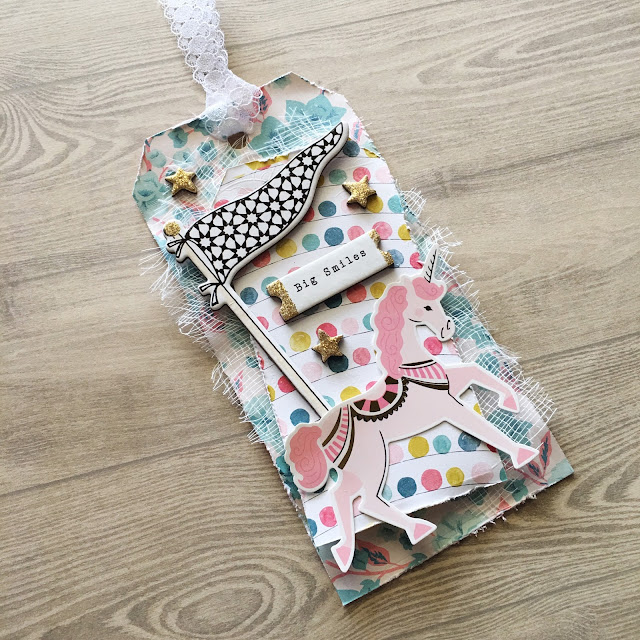 Kylie here today sharing some cute gift tags I have created using the new 'Carousel' collection by Maggie Holmes. Tags are some of my most favourite items to make.I will usually make a stock pile to have on hand ready.