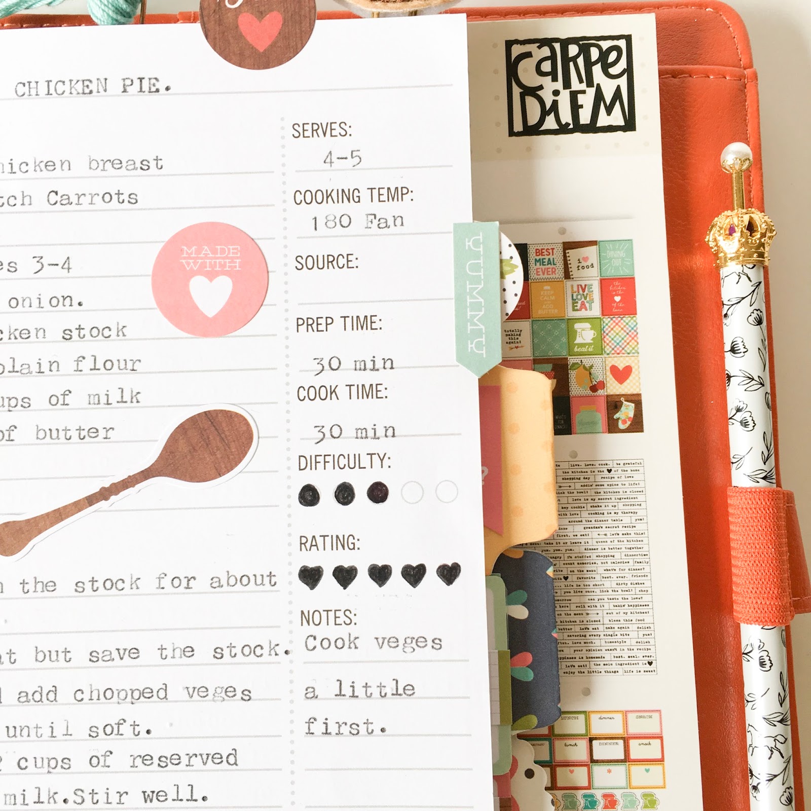 Kylie back with part 4 of Recipe Planning. Week 4!! Hasn't the time flown?? I have been super busy in my recipe planner this week, adding in all my fave recipes. I thought long and hard about how I was going to label each divider, and decided on