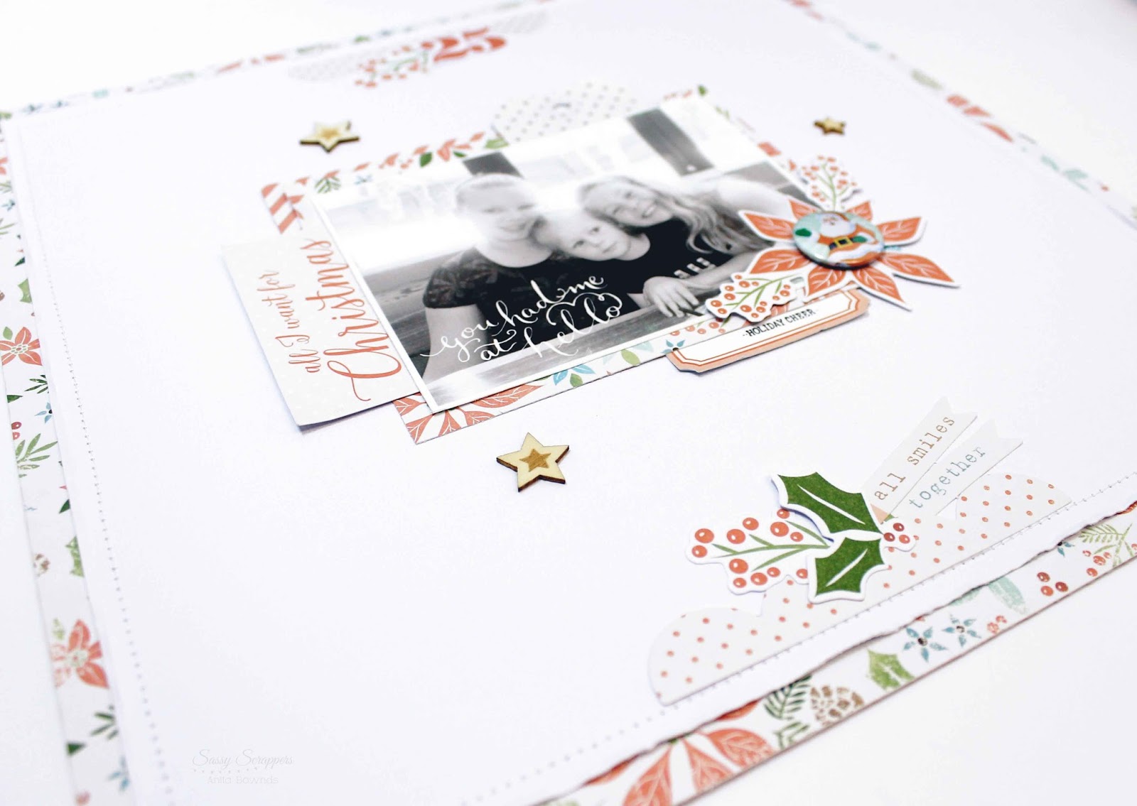 I love how the colours in this collection are not over powering each other they flow together with the lighter tones. So with my layout I wanted the design to be straight down the middle, with white space on each side...