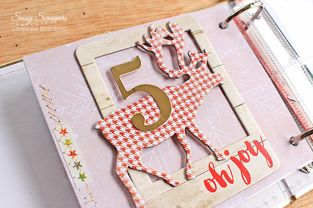 The divider was made with the 'Oh What Fun' 6x6 pad I mentioned, then there's a 'Claus & Co. frame, then Heidi moose and number 5 from the countdown pack. A teeny Expression sticker and a sparkle of thread finish it off.