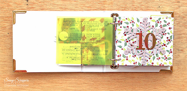 I've Minc-ed an Oh What Fun tag with gold and mounted inside a Claus & Co. chipboard frame, then punched it so I can add it to my binder. I've also split the number 11, adhering one to my frame and one to the protector sleeve. Not sure if it's a silly idea, but I like the way they sat at slightly different heights.