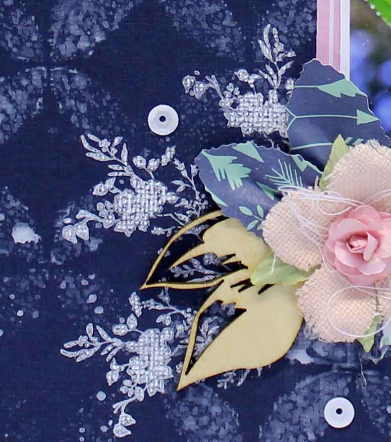 i added a few stamped flowery branches with white ink to go underneath my wood and paper leaves