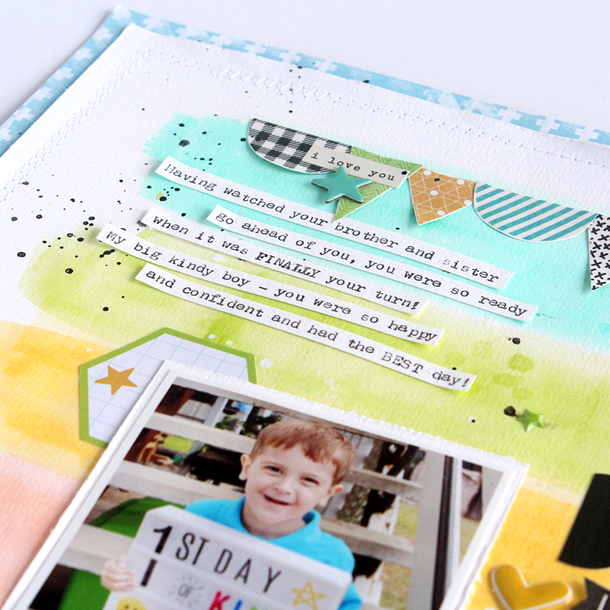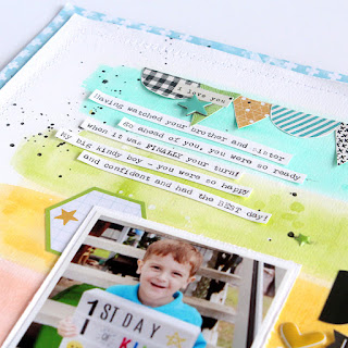 I always find my best inspiration comes from the product itself and for this layout, I was inspired by the striped design on the 'Super Hero' patterned paper.