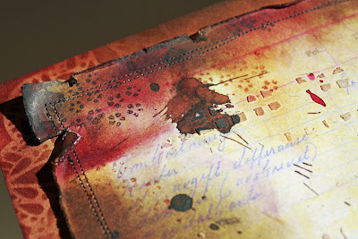A bit of texture paste through a template will add interest and when you splatter you Dylusions mist it will make that section darker. This range of pattern papers holds up really well against a lot of moisture from the mists and inks and its beautiful to distress, with your distressing tool.