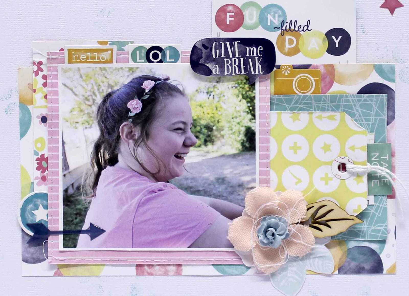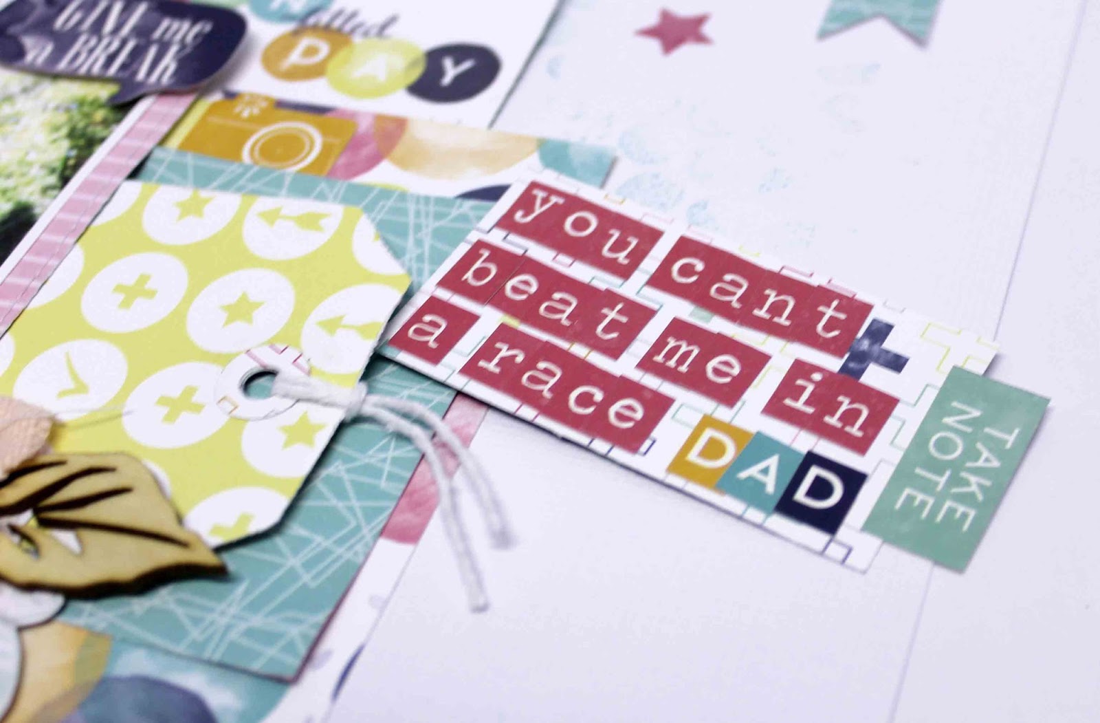 Ive chosen to use this pic of my daughter Kara laughing at her father as he was saying to her he could beat her in a race down our drive way and yep i just had to capture that moment and these little sticker words are just perfect