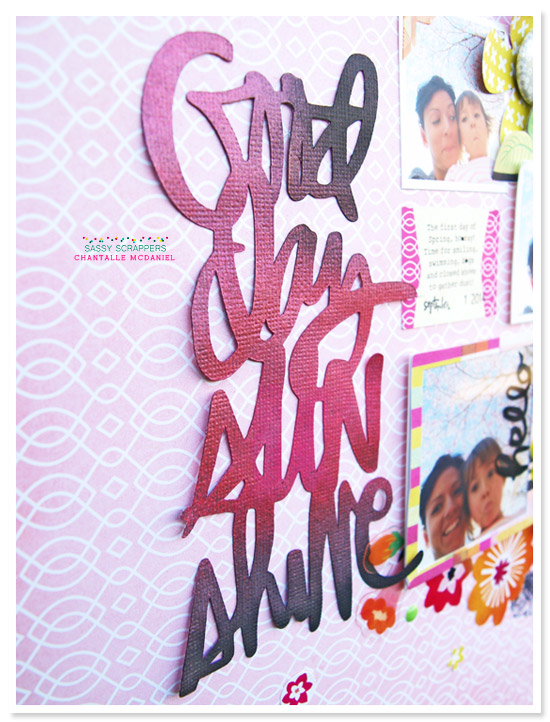 Add a fun dimension to your photos with a die cut frame with transparency overlays. There's quite a bit of layering going on here.