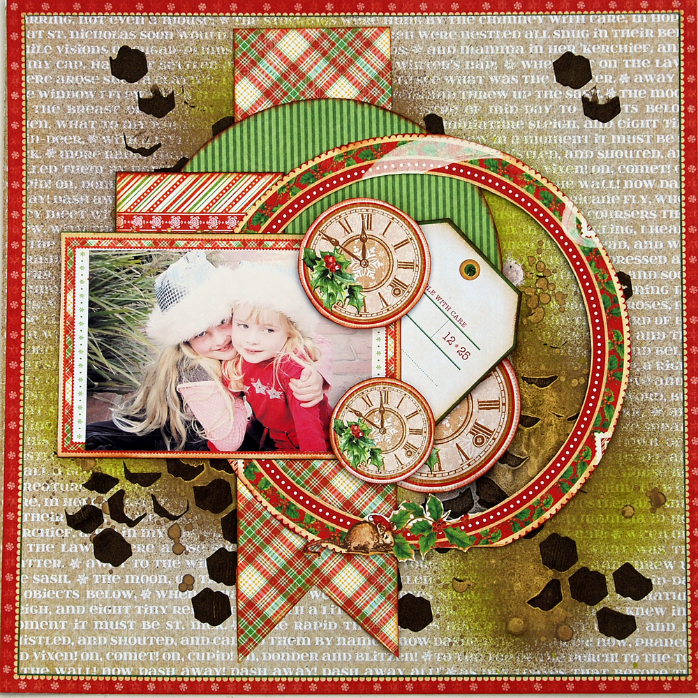 Add some coordinating Graphic 45 T'was The Night Before Christmas' chipboard elements.
