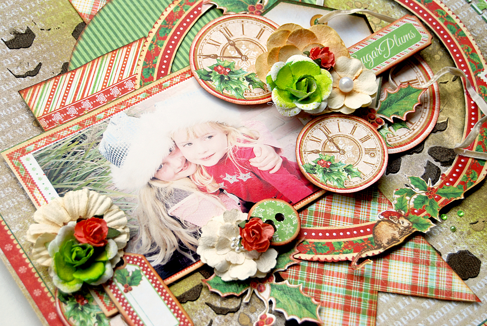 Sassy Products: Graphic 45 'Twas The Night Before Christmas': Patterned Papers - Up On The Housetops, T'was The Night Before Christmas, Jolly Old Elf, Long Winter's Nap, Happy Holly-Day, Chipboard; Prima Flowers - # 571542 Lemia & # 577384, Kaisercraft Ribbon Pack Turtle Dove, Bo Bunny Double Dot Emerald Jewels