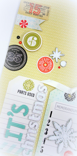 I gathered pieces from the Ephemera pack to scatter above my title and journalling block.