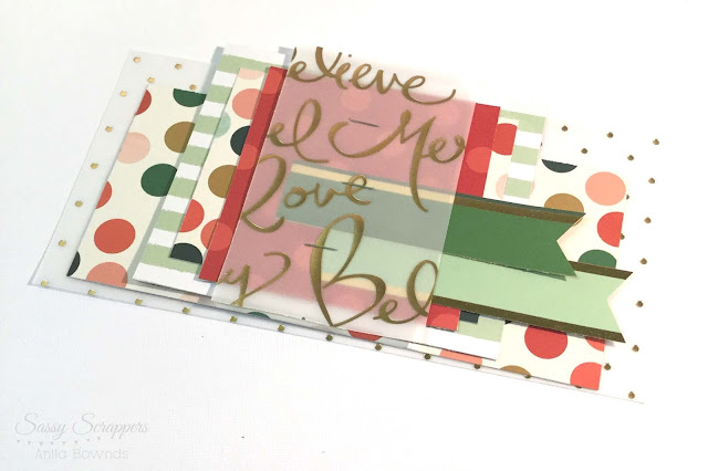 Then I start to embellish my layers by tucking under my layers of patterned paper