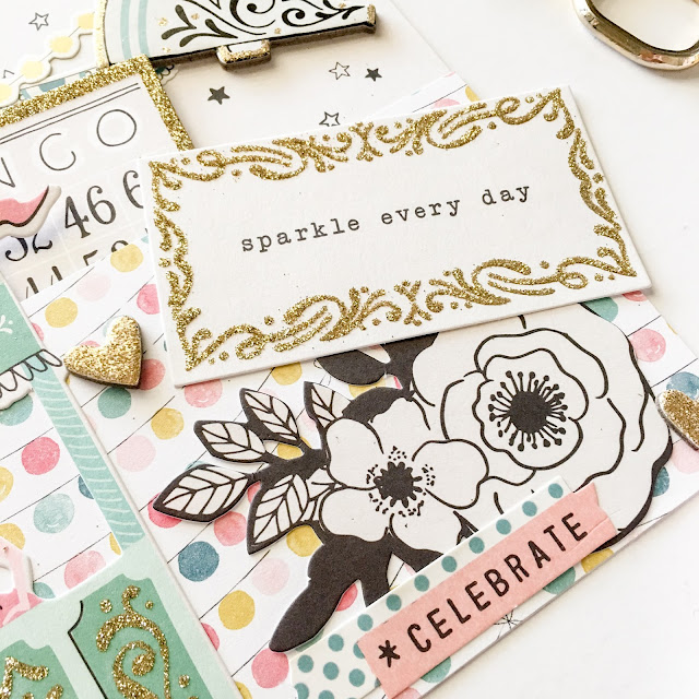 The front pocket sets the theme of my mail and I love the gold glitter included in this ranges ephemera pieces!