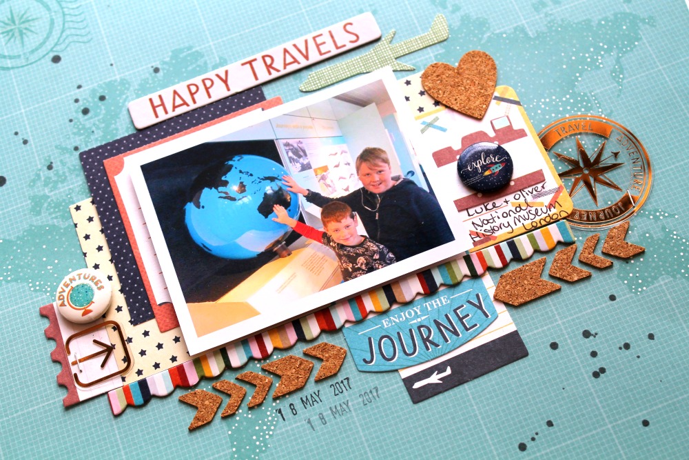 The Crate Paper Journey cork embellishments add some great texture to this layout!