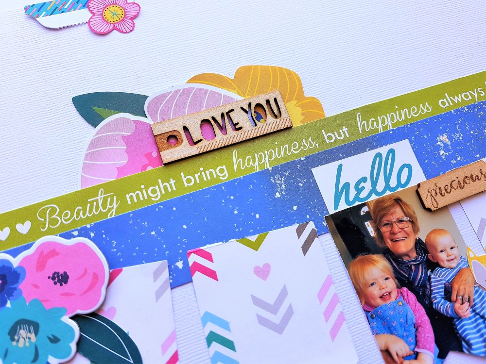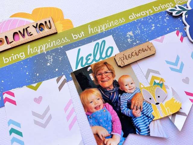 The Elle's Studio wood veneer from the Cienna collection were perfect to add to the layout as they say things like Precious and I Love You...all things that go with this gorgeous photo!