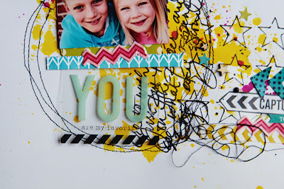 To add to my background I doodled in some stars with a black pen. I use a pilot permaball pen. I have also stamped with a Dina Wakely handwriting stamp.I have used a gorgeous Heidi Swapp acrylic tag as my tile and used various stickers from an Echo Park "Here and Now" sticker sheets along with the little captured word which I cut from "chalkboard quotes" patterned paper by Echo Park also.I have also used some wooden veneer shapes by Freckled Fawn and used a small star punch to cut some stars from my patterned papers.I have added some kaiser black pearls and rhinestones also.Add in some machine sewing and some embroidery cotton and there you have it!!!I will be back again soon with another share!Eb x