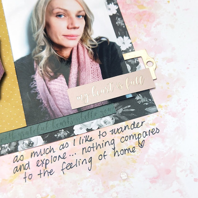 I like how the ink softened the stark white cardstock and helped to balance out the mustard and pink colours featured on the page.