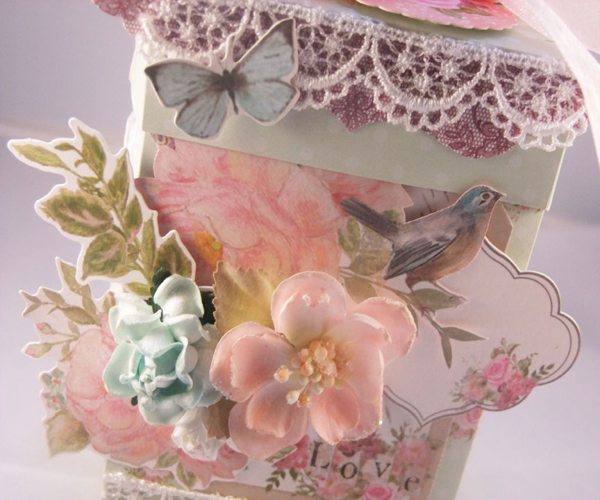 I haven't used much paper for this project. Just 2 sheets of the Day Dream paper, a tag from the Sweetheart perforated tags sheet & a fussy cut image from the Lovestruck paper