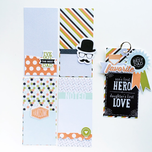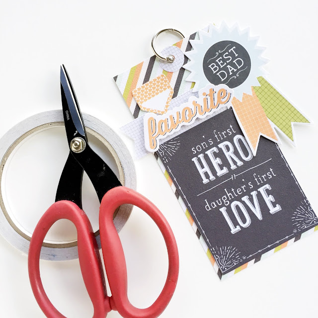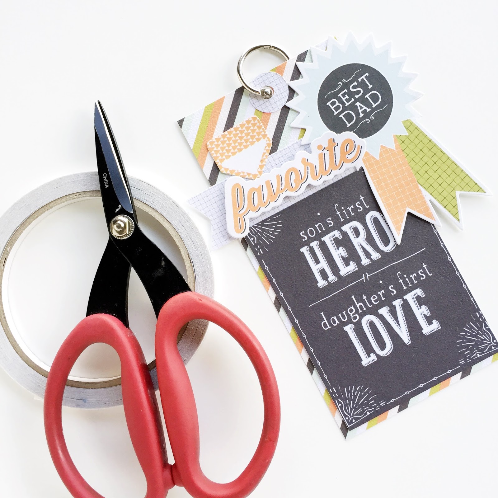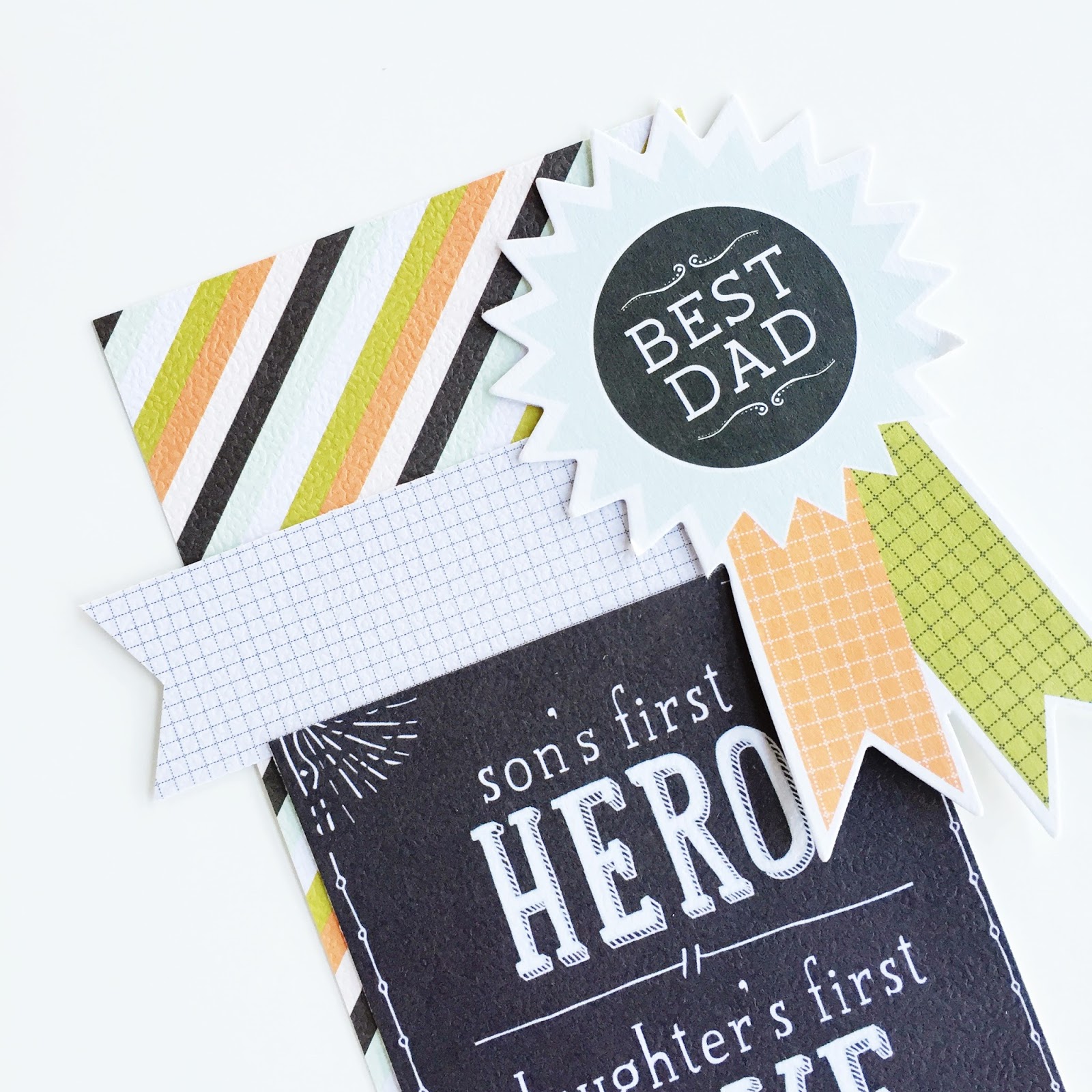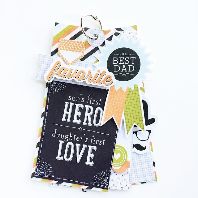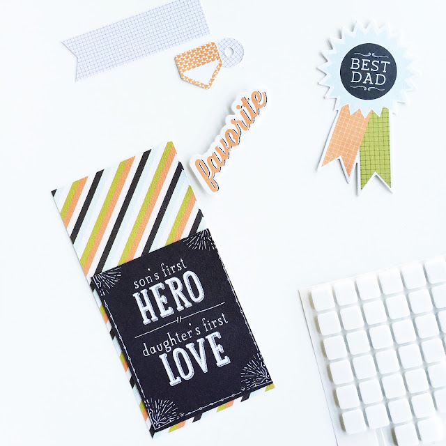 Adhere the die-cut ephemera "best dad" & mount the "favorite" die-cut onto foam tape.